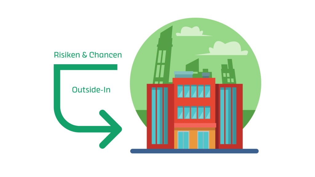 Die Outside-In Perspektive bewertet, wie externe Faktoren – sei es der Klimawandel, gesetzliche Rahmenbedingungen oder gesellschaftliche Erwartungen – Ihr Unternehmen beeinflussen können. Welche Risiken und Chancen entstehen durch Umweltveränderungen oder neue Regulierungen? Wie wirkt sich dies auf Ihre Geschäftstätigkeit und Ihre strategischen Ziele aus?